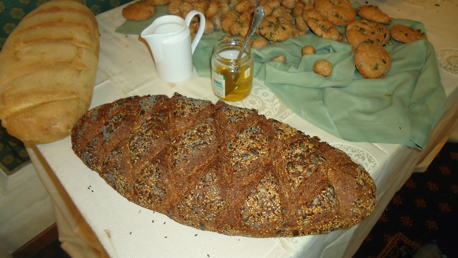 Come avrete capito un pò dalle mie ricette sono una fan della bravissima Sara Papa…la seguo da un pò di tempo e cerco di ricreare le sue buonissime e fantastiche ricette! Qualche mese fa, tramite il suo fan club su facebook, sono venuta a conoscenza di un suo corso a San Sepolcro (Ar) il 9 aprile e subito mi sono iscritta!!! Come resistere?!?! Ho coinvolto anche il mio ragazzo in questa esperienza ed è rimasto affascinato anche lui dalle sue ricette e dalla sua bravura. E’ una donna fantastica,umile,semplice e coinvolgente. Ci insegnato molte ricette e spiegato tutto sul lievito madre (ed alla fine del corso ha regalato ad ognuno di noi un pezzo del suo lievito che deriva da un ceppo di 160anni!!!!). Vi mostro un pò di foto riguardanti le ricette realizzate al corso:
