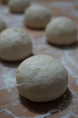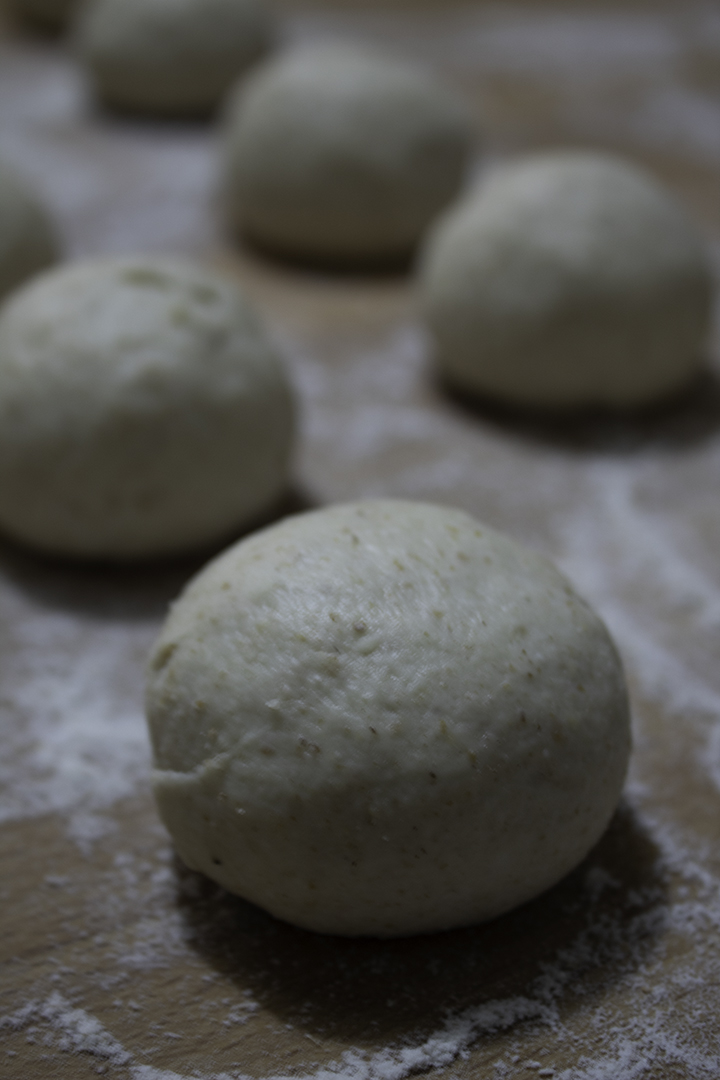 Quando la pasta sarà lievitata, toglietela dalla ciotola e formate un salsicciotto. Dal filone di impasto ricaverete tanti pezzetti del peso di circa 30 gr ciascuno, con i quali formerete delle palline che adagerete su di una teglia foderata con carta forno. Per formare i panini dovrete lavorare il singolo pezzetto di impasto prendendolo con le dita delle due mani, tirare i bordi della pasta verso il basso e spingerla con i pollici alla base, premendola poi per saldarla.